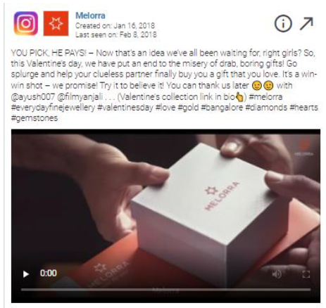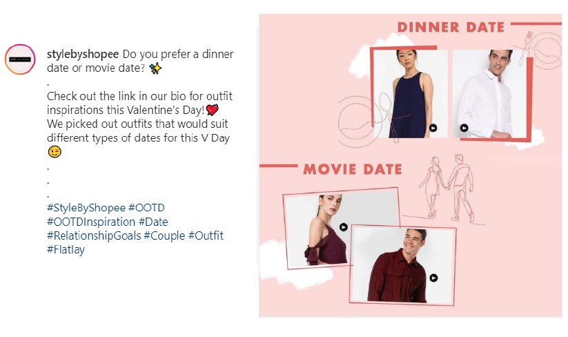 • 广告版位:可以结合利用 ins-stories 版位以及其他全屏版位,提升视频的观看体验。另外还可整理商店里面同色系或者适合在情人节销售的商品,制作目录广告和轮播广告,给受众更多的选择性,往往有不错的效果。