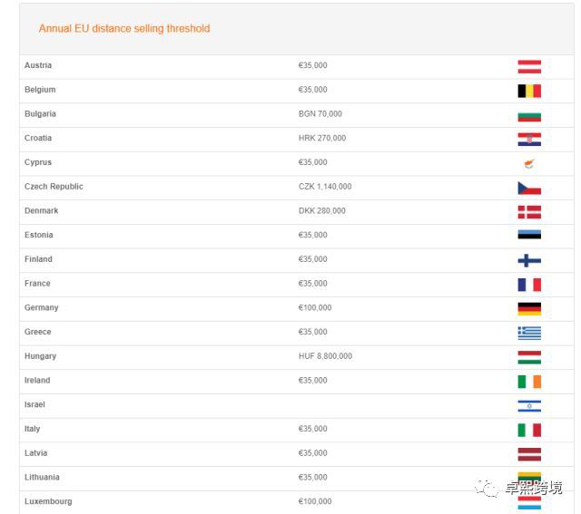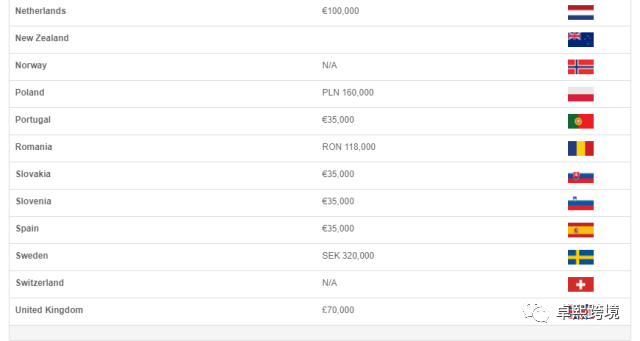 以下是远距离销售,也就是从英国FBA派送到其他国家的免征金额