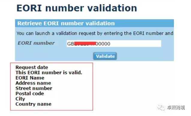 如,VAT号码是292 2337 00 ,那么EORI号码就是 GB292233700000 ,经查询,生效显示如下,