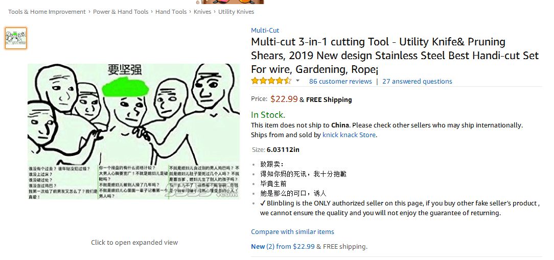 还有下面这款小工具产品,因为被跟卖,图片生生被修改成了“要坚强”: