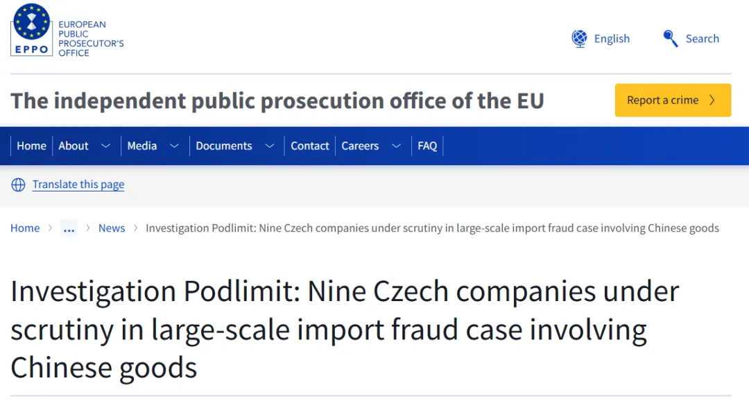 4月20日消息,欧盟检察官办公室(EPPO)发起代号为“Podlimit”的专项税务追溯调查,将目光投向2017至2018年经捷克等国进入欧盟的约4000批次中国货物。调查显示,涉案九家捷克公司通过滥用海关政策、伪造文件等手段,造成欧盟关税及增值税损失至少达1.374亿欧元--约合人民币11.04亿元。