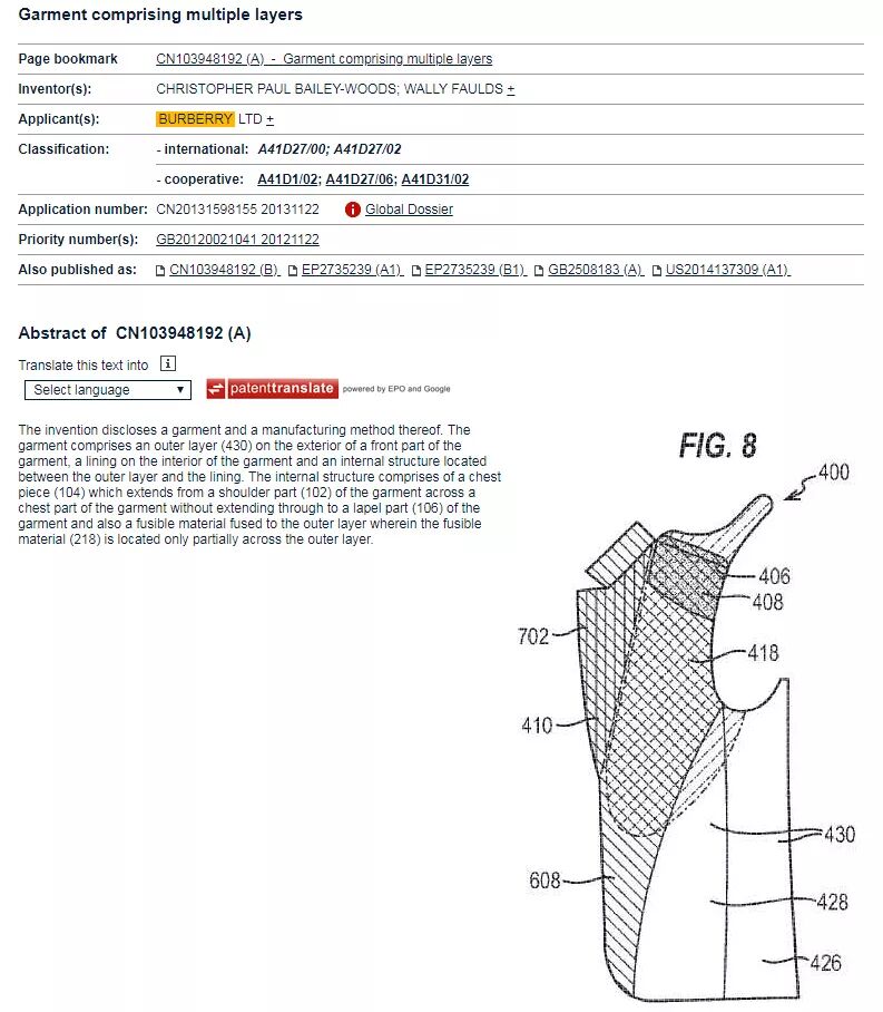 服装行业 跨境电商的重头戏之一 被投诉? 被侵犯? 服装知识产权如何保护? 这里带你浅析 电商平台上销售服装的你是否有过这样的困惑---辛辛苦苦设计出来的衣服,上架之后不久就被抄袭了?价格往往比原设计的还便宜!流行款式和元素瞬间被抄袭在服装行业早已见怪不怪了。与实体销售相比,抄袭对于做电商的卖家造成的损失可能更大。 下面我们来浅析服装的知识产权保护。 一件衣服的设计图纸,可以通过版权来获得保护。需要注意的是,版权获得的方式有两种,分别是自动获得(默认)和登记获得(主动)。换言之,你的服装设计图纸,一旦公开即获得版权。自动获得和登记获得这种方式主要的差别在于前者是没有版权号,后者则有版权号,有版权号的情况下,一旦被侵权,在维权时可以提供有力的证据,即版权证书。 设计图纸可以通过版权法来保护,不过,根据服装设计图批量生产的服装成衣不受版权权法保护。成衣作为一种产品,可以依据外观专利取得保护。 而放在网站上的图片则有属于版权法保护的范畴。但是网站的图片不是一两张,如果全部登记的话,成本高。我们可以选择重要且有代表性的图片登记版权。 虽说可以登记版权和申请外观设计专利,然现实情况往往是抄袭成本极低,就算有版权和外观专利,由于维权成本很高,只能任由之。我们跨境电商的卖家可以通过向平台投诉的方式进行维权,无需成本,但前提是你的产品有专利或者版权。亚马逊平台收到侵权投诉后,会立即采取强制禁止侵权产品的listing,同时发出警告信。 基于现实的情况,在知识产权预算有限的情况下,经典稳定款服装应尽量申请外观设计专利,而那些易过时的款式则可考虑对设计图登记版权。此外,对于一些有创意的装饰性元素,还可以考虑申请商标,让这个元素成为品牌的标志之一。 案例一 英国品牌burberry 衣领下的格纹设计专利 (图片来自网络) 通过申请专利,格纹设计的专用权达25年,通过这25年的积累,消费者把这个设计与品牌联系在一起,也成为品牌的特征,因此,即便设计专利的专用权期满了,品牌效应依然持续。 如果是研发了新布料和新的纺织方法,则可以申请发明专利。 例如: (欧盟发明专利 -- 纺织方法) 案例二 LEVIS牛仔裤口袋的V形图案商标 LEVIS这个图形商标,对服装设计行业保护装饰性元素起到一定的启示,对于有品牌代表性的图案元素,注册为图形商标,只要期满续展即可享有永久专用权,而版权和专利,期满即归为公共财产。 总而言之,服装知识产权保护,根据不同的情况, 从商标、专利、版权多方面下手。LOGO或装饰性元素图案注册为商标, 外观专利重点在于抢占市场先机,服装设计图纸登记版权。