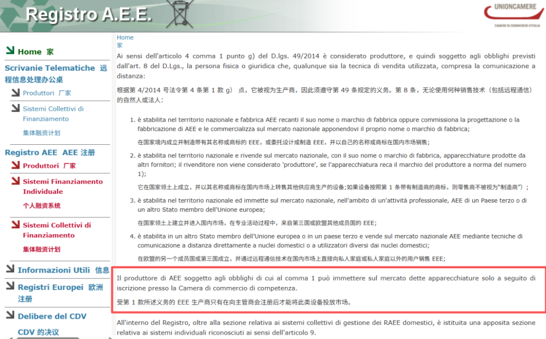 和德国EPR要求类似,即便远程销售,也必须指定意大利境内法人或自然人作授权代表,负责WEEE注册、合规申报、产品回收等,是衔接意大利环保部门的关键。