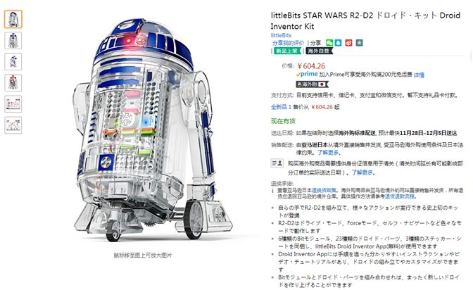 LittleBits与《星球大战》共同推出的这款产品,既使孩子们可以亲手组装属于自己的R2机器人,又能学会基础的编程知识。机器人组装完成后,孩子们还可以通过苹果或安卓手机来控制机器人。孩子们甚至可以在自己的组装的机器人中插入其它的Littlebits组件来扩展R2的功能。