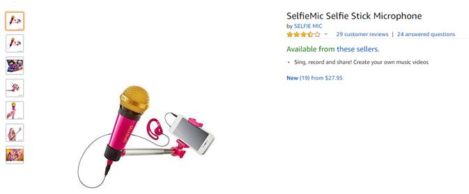 这是一款配有麦克风的自拍杆,在安卓和iOS设备上也有配套应用,里面有很多卡拉ok歌曲。如果你的孩子立志要成为一名流行歌手,或者喜欢唱歌,那么SelfieMic应该能直中他们的“红心”。孩子们甚至可以编辑他们的创作,添加效果,并将自己的歌曲分享给他们的小伙伴。