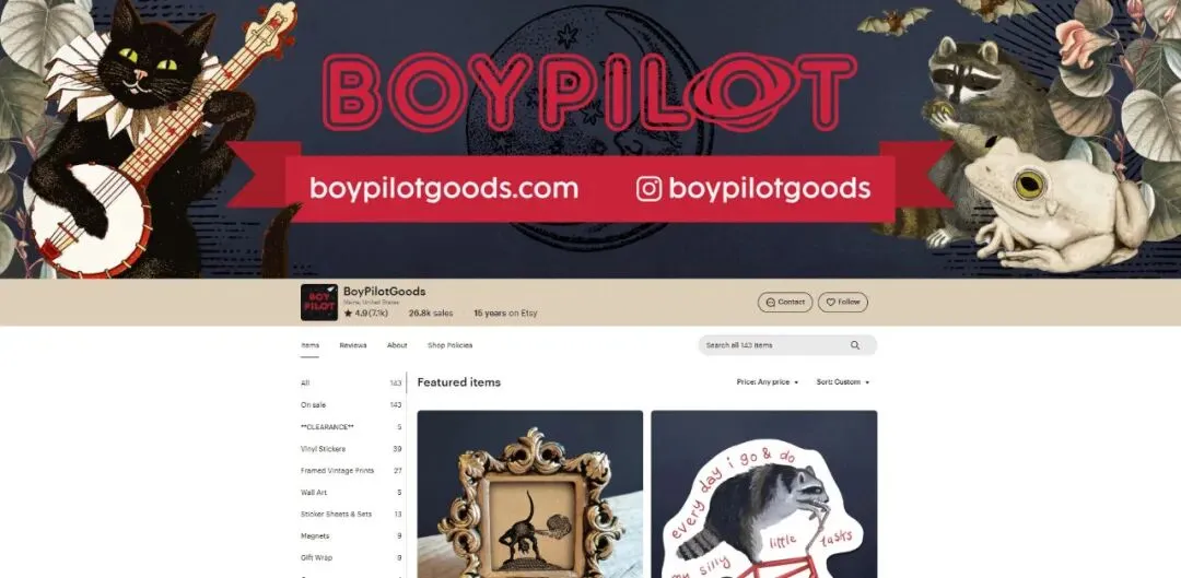 此外,Zeraph Moore不仅深耕个人品牌,亦与北美数百家独立零售商建立批发合作,坚持在美国本土完成设计制作,明确拒绝使用人工智能。其作品凭借鲜明的辨识度与细腻的手绘质感,迅速获得市场认可,店铺累计销量超过26,000件,并屡次获评“Etsy精选”与“畅销品”称号。