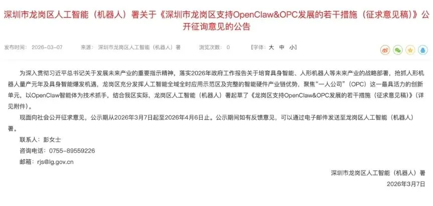 深圳龙岗区:推出“龙虾十条”,打造华南产业创新中心。将OpenClaw纳入区级开源软件重点扶持目录,落户企业享3年租金全额减免、最高50万元落户补贴;辖区企业采购部署OpenClaw,按规模给予10%-30%资金奖励,单家企业年度最高补贴200万元;同时实施“OpenClaw数字员工应用券”计划,对相关项目按不超过总投入40%给予补贴,还对模型调用费用给予30%补贴。