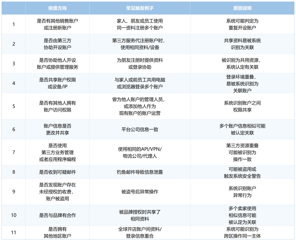 如果找过外包团队,他们为多个销售账户提供相同的业务,为了方便操作,他们可能会使用相同的材料或信息来进行管理操作,从而导致你的账户与不认识的卖家账户造成了关联。
