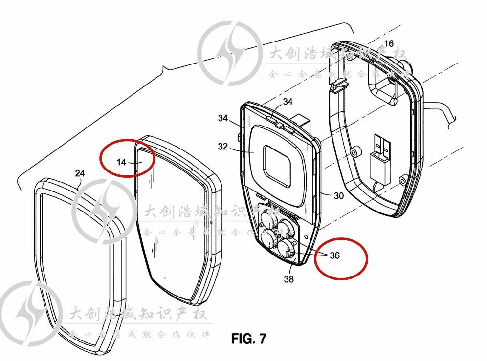 综上信息,针对该项美国发明专利,我给出如下侵权规避方案:取消安装板30,安装板30的作用是方便装配感应线圈32和磁体36,将装配感应线圈32和磁体36之间设置在背面16上。