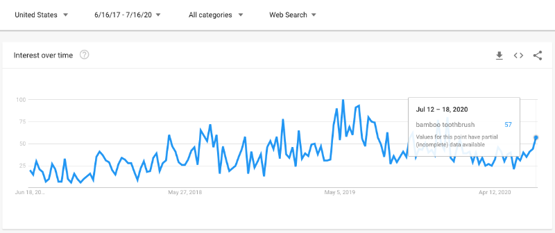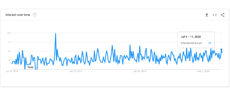电动牙刷的销售通常在圣诞节前后达到高峰,但今年以来,人们对电动牙刷的搜索兴趣自3月份以来一直在稳步增长,并于上周达到峰值。