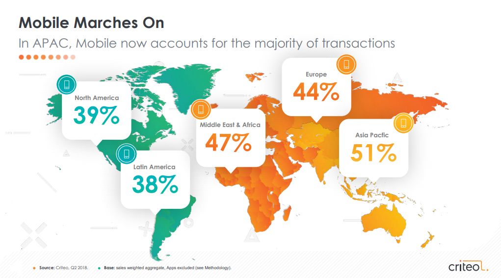 欧洲移动端在线交易总量达44%,亚太地区为51%