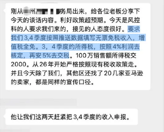 一是要求卖家3、4季度按照推送数据填写无票免税收入,增值税全免