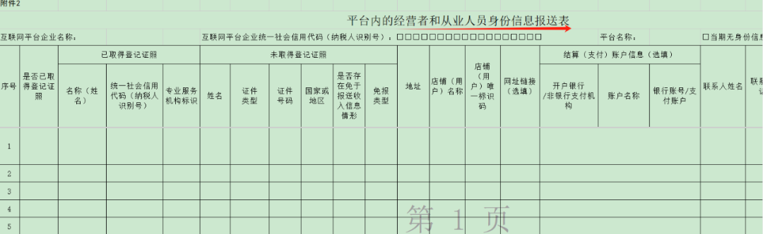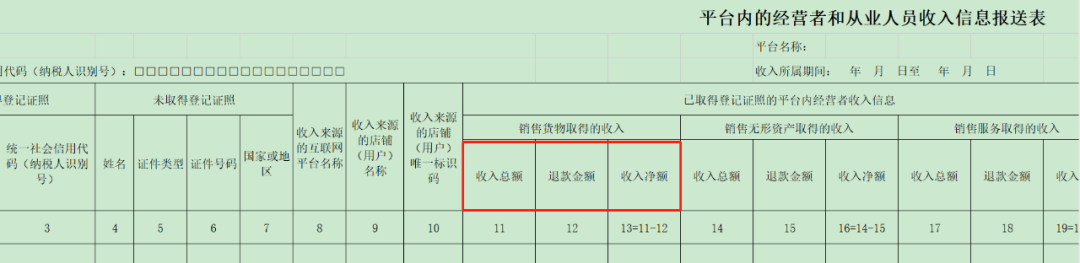 主要是两类核心数据。一类是身份信息,包括卖家名称、纳税人识别号、证件类型与号码这些,具体的可以参考下面这个报送表: