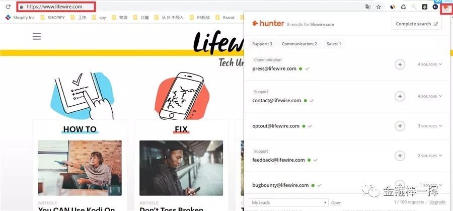 接下来去邮件联系!这里推荐hunter.io 可以自动读取出网站的Email。