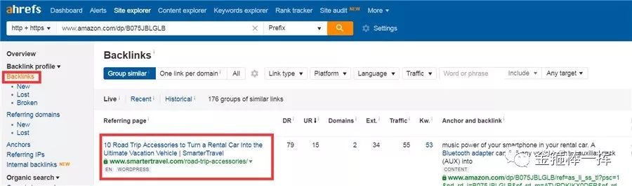 链接格式https://www.amazon.com/dp/B075JBLGLB放在ahrefs看一下外链情况