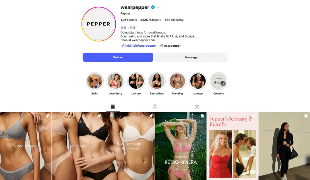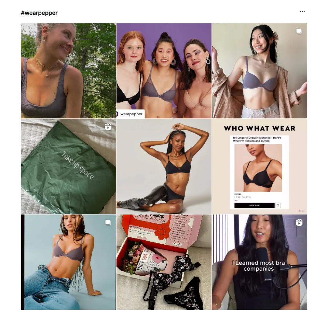 打开Pepper的Instagram,你会发现一个特点:内容主角几乎都不是传统意义上的内衣模特,而是普通消费者、博主和真实用户。