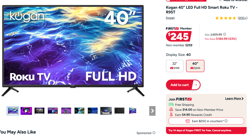 (图片来源:https://www.kogan.com/au/buy/kogan-40-led-full-hd-smart-roku-tv-r95t-kogan/;引用日期2025-1-15)