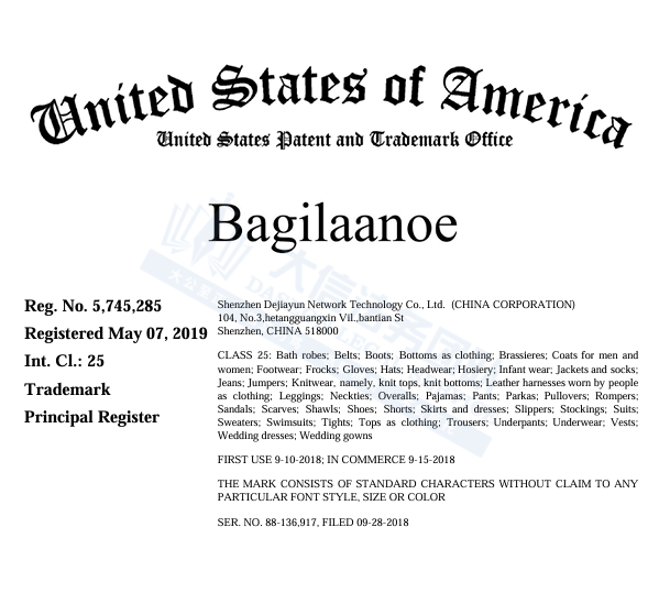 此案为商标维权,涉及1个文字商标,关键词:Bagilaanoe,未经授不得擅自使用,跨境卖家尽快检索下架,避免TRO侵权风险!