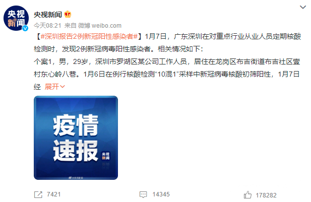 1月7日,深圳市在对重点行业从业人员定期核酸检测时,发现2例新冠病毒阳性感染者。1月8日凌晨,天津在愿检尽检人员和发热门诊主动就诊人员中检测发现2例新冠病毒核酸检测阳性人员。一时间,深圳、天津冲上了热搜,当你打开朋友圈、跨境圈、交流群中,全是刷屏去做核酸检测的。