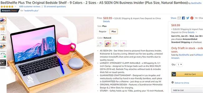 1、BedShelfie床边小桌板