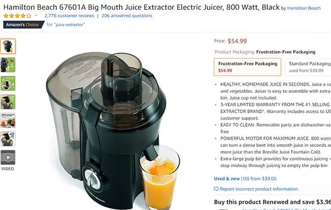 8、Hamilton Beach电动榨汁机