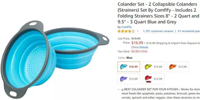 这款产品可以折叠,便于储存。每款产品为两件装,尺寸分别为8英寸和9.5英寸。产品把手为具有隔热作用的橡胶材料,使用者也可以将篮子置于沸水中,把蔬菜和其他食物烫熟。