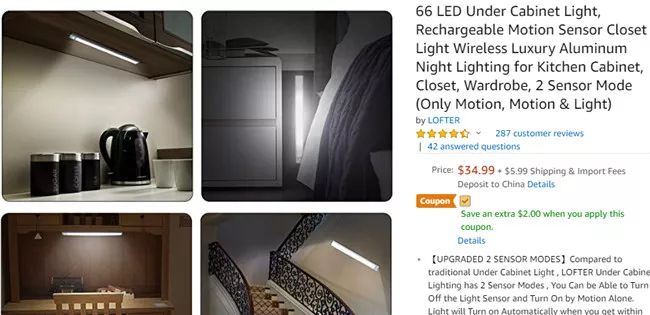 这款产品可以防眩光,不会影响使用者观看屏幕或电视。此外,它会在距离使用者10英尺远时自动开灯,然后在其离开18秒之后关闭。每款产品附带有一条磁性胶黏条,因此安装过程十分简单。产品的LED灯泡寿命为1万小时或更长。