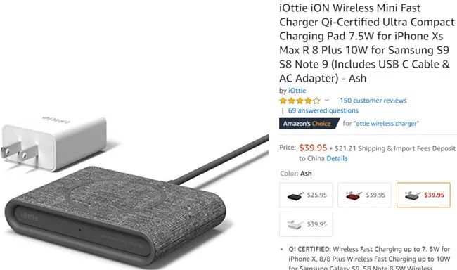 这款产品设计简洁,便于旅行携带,它的外部采用柔软的羽毛纤维织物包裹,与家中的任何装饰都可以很好地搭配。该产品可以为iPhone 8 Plus、三星Note 8和其他所有支持QI(无线充电)的设备充电,其充电功率为7.5瓦。此外,它的状态指示灯可以让使用者知道自己的手机是否正在有效充电。