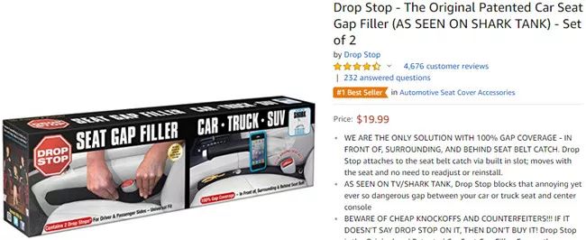 38、Drop Stop汽车座椅间隙防漏塞条(两件装)