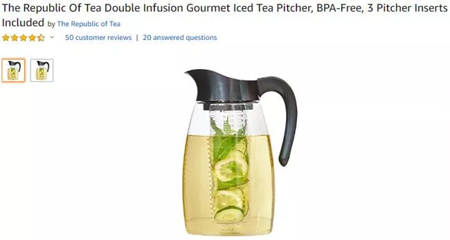 该产品不仅不含双酚A,而且还具有防碎、防刮伤、防污渍和耐热作用。水壶内的过滤设计允许使用者可以冲泡未带茶包的茶叶、放入水果或者装入冰块。该产品还可以容纳2.9夸脱的水量。无论在什么场合,它都是作为礼物的不错之选。