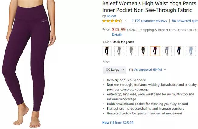 大多数瑜伽裤在拉伸后会变得透明,但该产品不会出现这一问题。此外,产品布料能够吸湿排汗,且透气有弹性。裤子上还有一个可以存放钥匙或卡片的隐藏口袋。