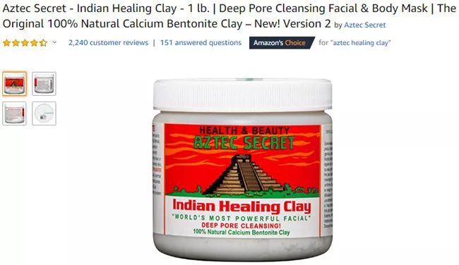 该产品对于面部、头发和身体均适用,有助于去除毛孔中的污垢和毒素。它由100%天然膨润土制成,对于敏感肌肤也同样适用。