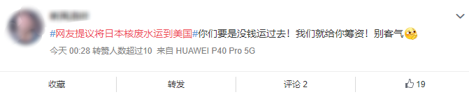 日本没钱运废水到美国,中国网友妥妥发挥了“一方有难,8亿中国网友支援”的精神。