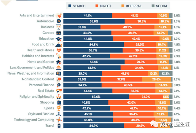 国外权威网站统计出各个行业的头部电商网站流量渠道分布图,可以看到: