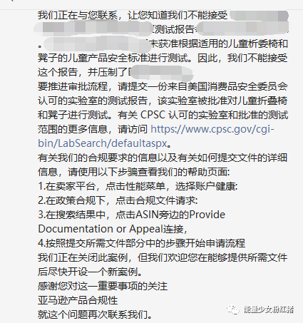 (2) 有些产品可能是需要提交一份来自CPSC(Consumer Product Safety Committee美国消费品安全委员会认可的实验室)的测试报告,有图为证: