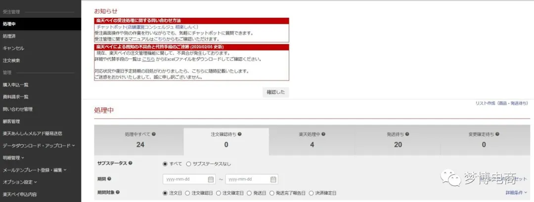 【注文確認待ち】按钮是乐天商店使用频率最高的页面之一