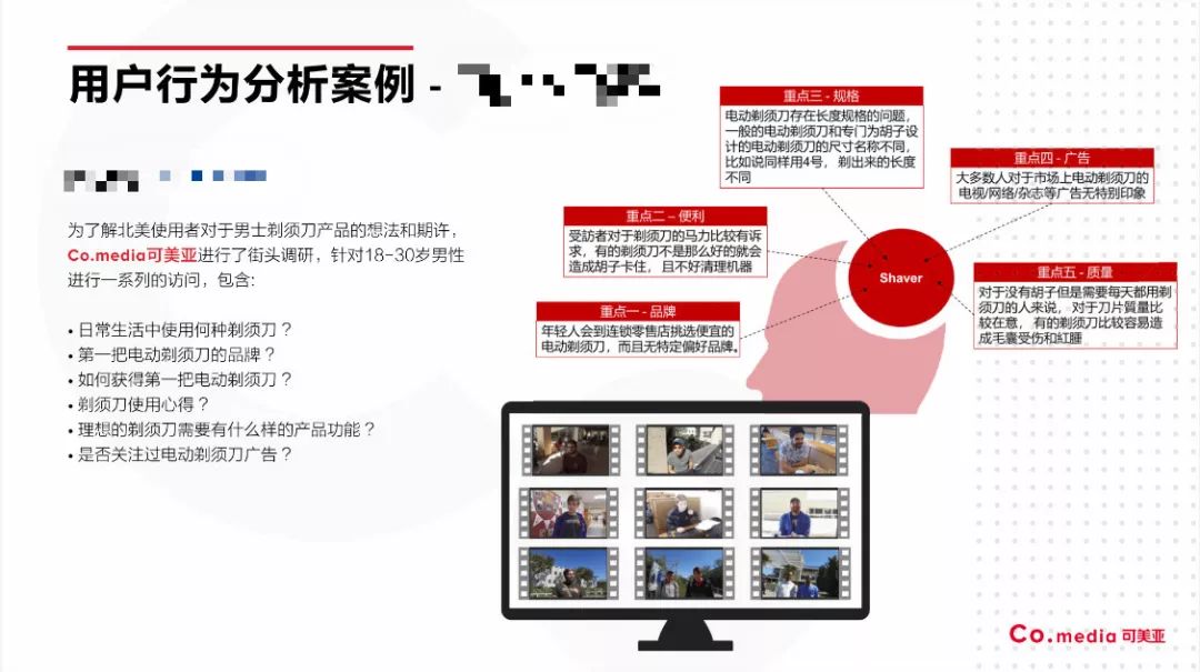 为帮助某国内知名的电动剃须刀品牌了解北美使用者对男士剃须刀产品的想法和期许,Co.media在海外进行了街头调研,帮助企业确定产品的目标消费人群。