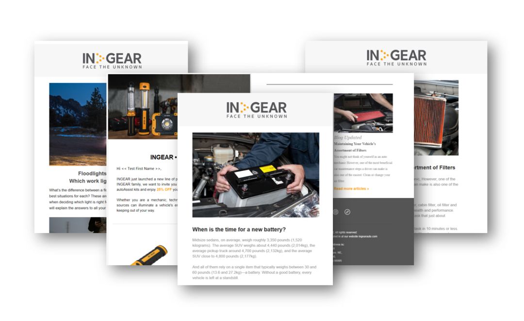 Co.media为Ingear每周发布Newsletter,更新带有行车安全等教育类的内容,维持客户粘性,打开率为35.1%。