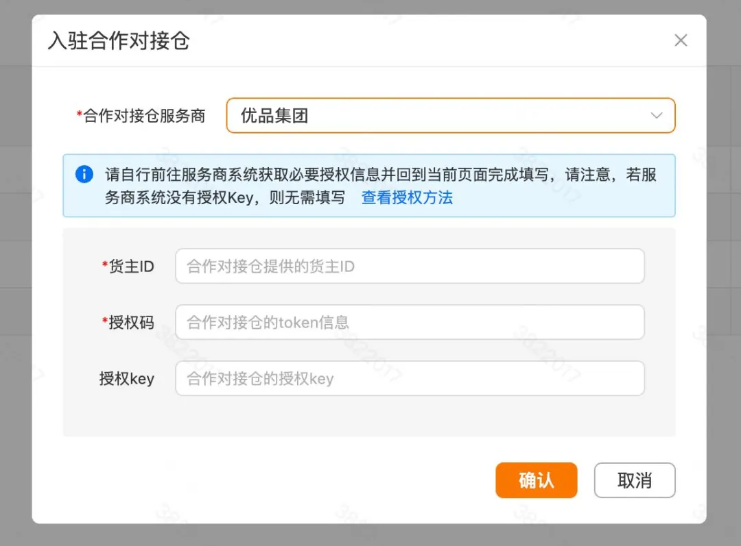 在弹出的窗口中,在合作对接仓这一栏下拉列表,选择【优品集团】作为您的服务商:
