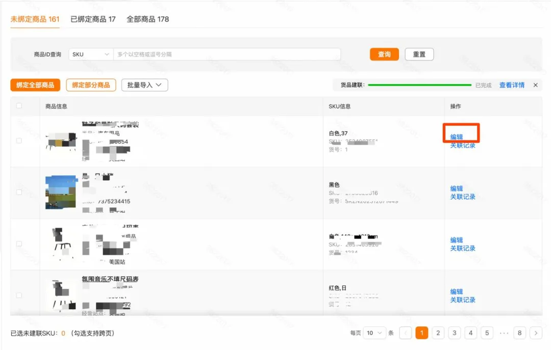 🔹若一次绑定较多货品,系统可能需要较长的操作时间,建议您在当前页面等待。