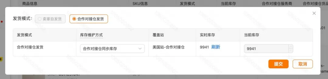 发货模式由【卖家自发货】切成【合作对接仓发货】时,会展示站点的仓库实时库存以供参考。