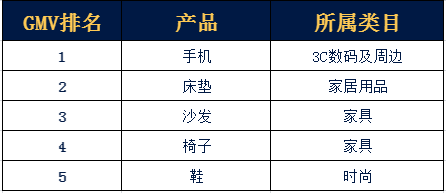 在上述品类中,增长较为明显的几个品类分别是体育用品、生活家居、家具、宠物用品等,数据如下。