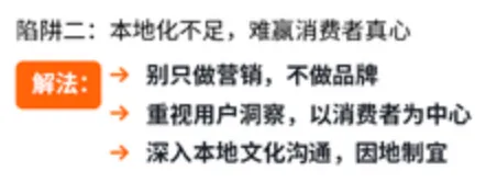 陷阱二:本地化不足,难赢消费者真心很多出海企业将国内的运营模式直接复制到海外市场,仅做营销语言的翻译,没有真正落地本地化运营,无法获得当地消费者的深度认同。