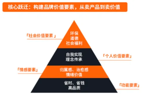 第三层个人价值要素:核心是满足用户的自我实现、理念传承的需求,让品牌成为用户个人理念与身份认同的载体。
