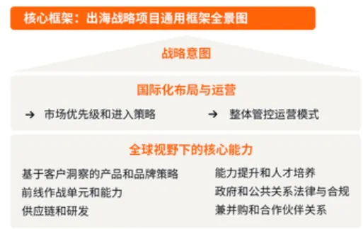 出海战略项目通用框架全景图这套框架遵循从上到下的战略拆解逻辑,从顶层战略意图,到落地运营布局,再到核心能力建设,形成完整的战略闭环。