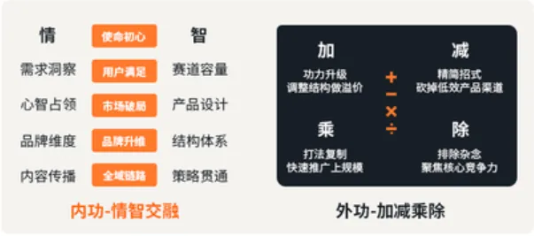 外功:加减乘除,优化品牌的增长路径。外功的核心,是通过加减乘除四大动作,优化品牌的资源配置与增长路径,实现高效的市场扩张。
