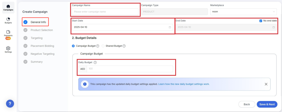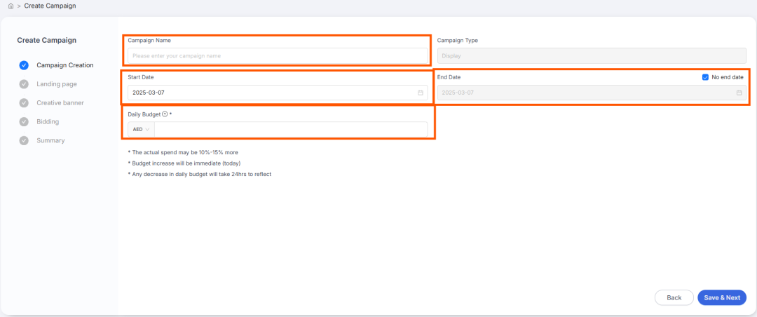 Start Date(开始日期):选择此次广告投放的上线日期。
