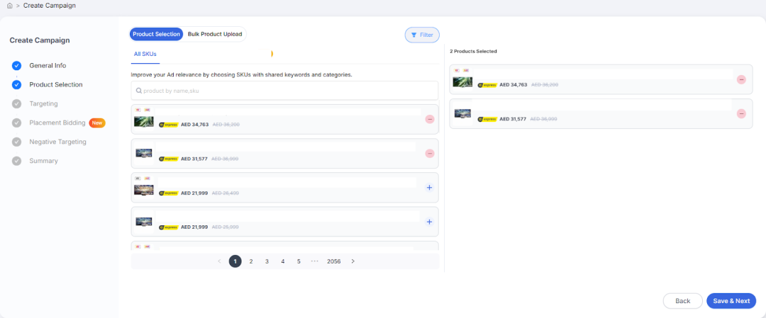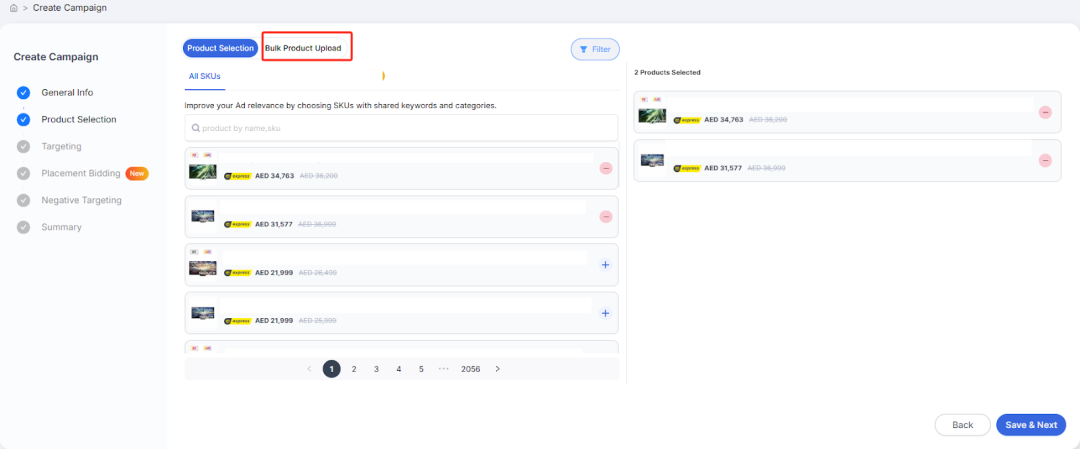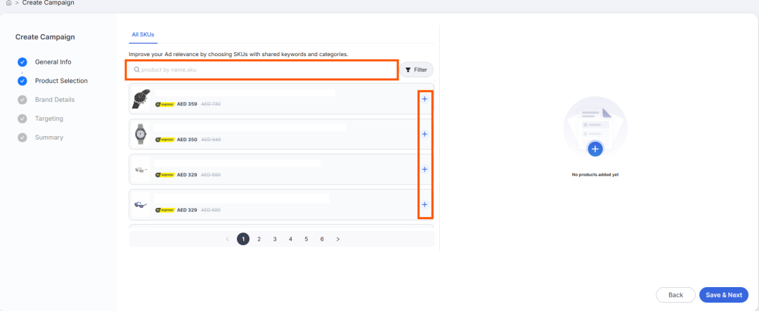 产品广告单个广告投放最多可以添加50个SKU。卖家可以通过搜索和筛选,单个添加SKU。