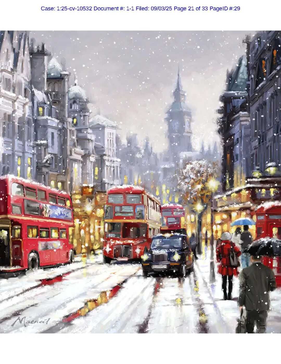 原告The Macneil Studio Ltd. 由英国艺术家 Richard Macneil 与家人于 2009 年创立,主营水彩、油画、雕塑及陶瓷等艺术形式,作品以圣诞、乡村、四季等温馨主题见长,畅销全球礼品与家居市场。这是Keith律所今年第三次代理原告发起诉讼。