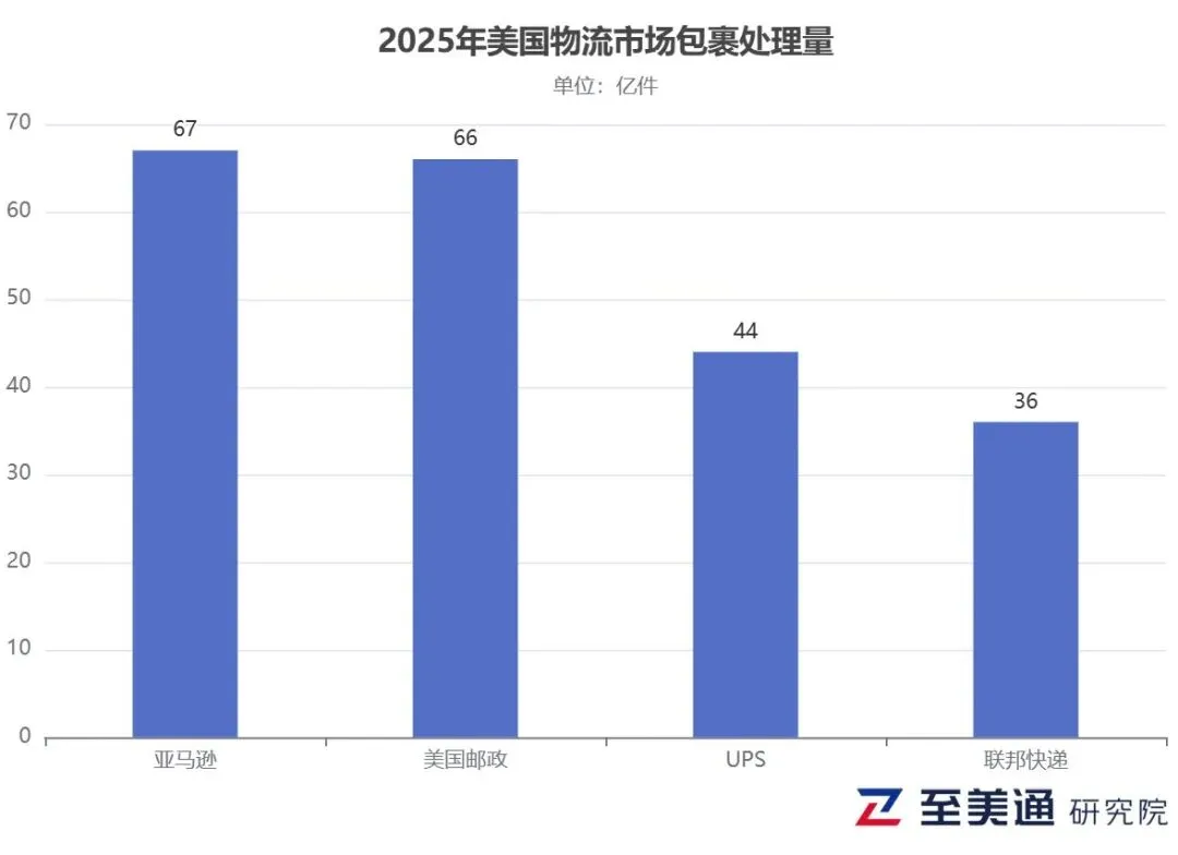 随着亚马逊将此前由UPS处理的大量末端配送工作纳入自营体系,2025年亚马逊超越美国邮政,成为美国最大的国内包裹承运商,这一变化标志着市场正加速从传统快递公司转移。
